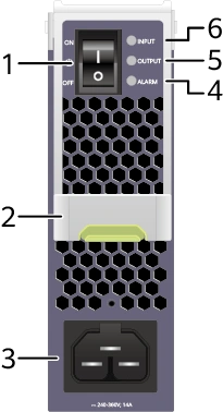 Green | Steady on | The input power of the power module is in the normal range. | ||