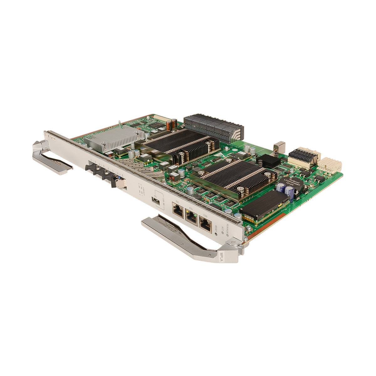 The board is a control board. It is the core of the system control and service switching and aggregation. The board can also function as the management and control core of the integrated network management system (NMS). It communicates with service boards about the key management and control information through the master/slave serial port and inband GE/10GE channel. In this manner, the board configures, manages, and controls the device, and also implements the simple route protocol functions.